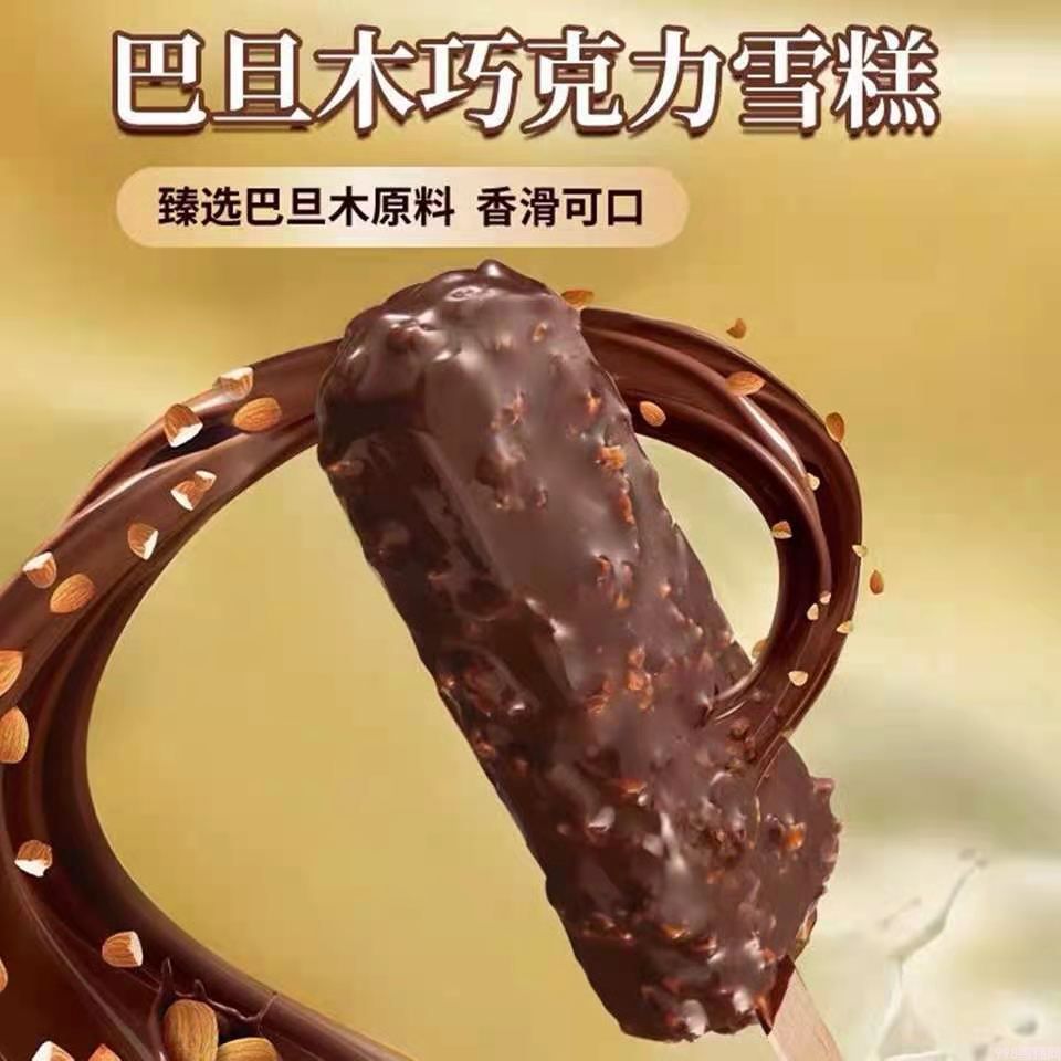 采用特有工艺配方,调配出不易剥落、与雪糕一起溶于口中的巧克力表皮。 在咀嚼到巴旦木颗粒香脆口感的同时,巧克力与雪糕融合的柔滑质感在口中蔓延, 形成丰富的层次感。