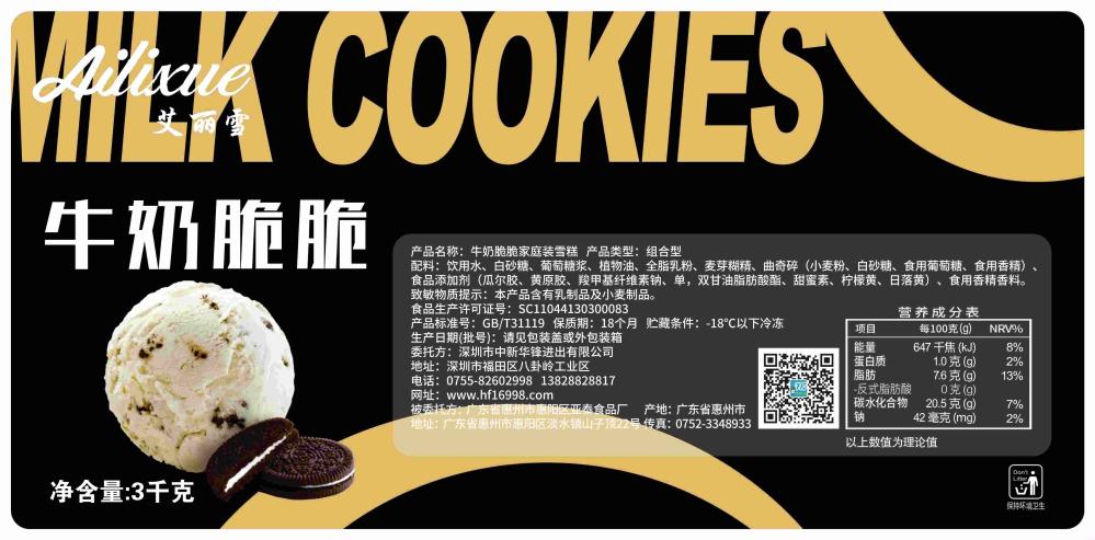 【商品名称】:艾丽雪牛奶脆脆(清爽型)DIY大桶装冰淇淋罐装