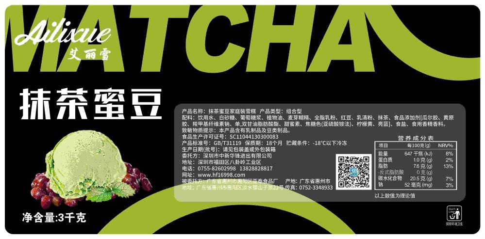 【商品名称】:艾丽雪抹茶蜜豆(清爽型)DIY大桶装冰淇淋罐装