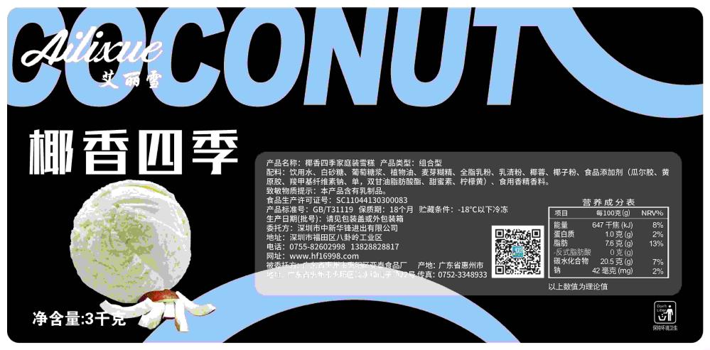 【商品名称】:艾丽雪椰香四季(清爽型)DIY大桶装冰淇淋罐装